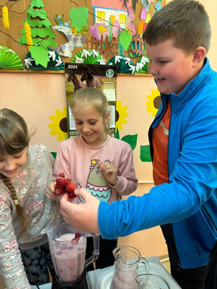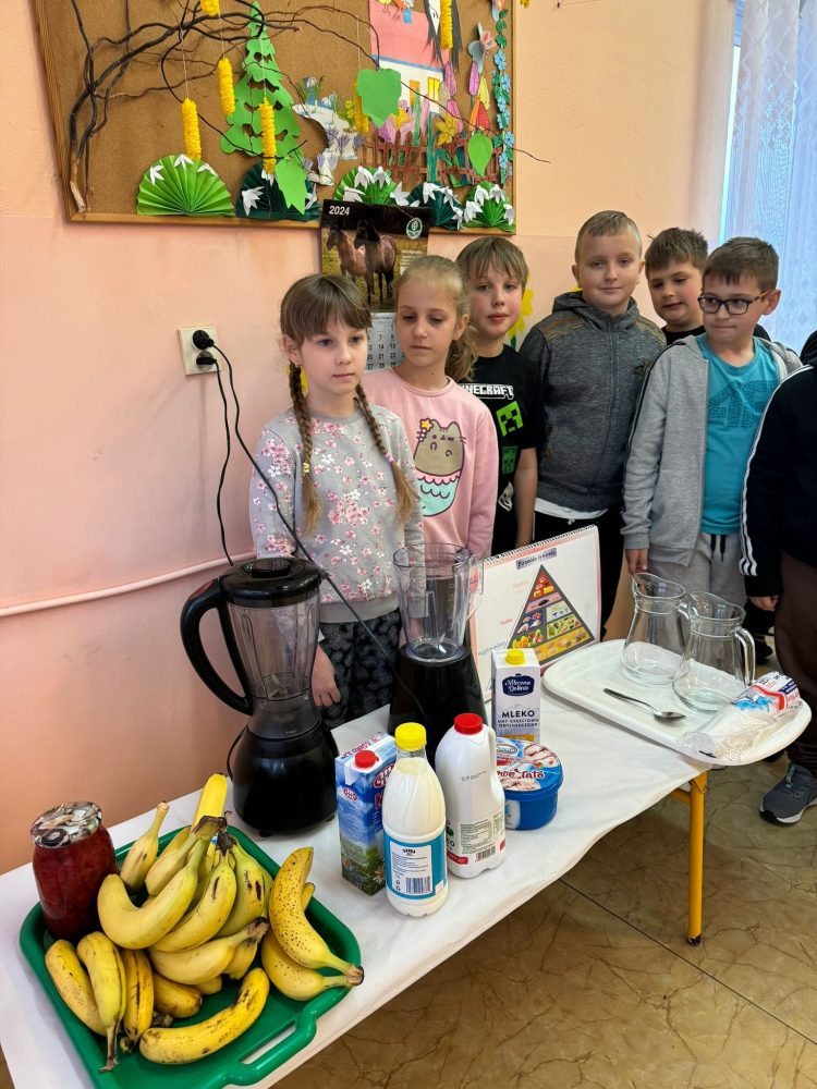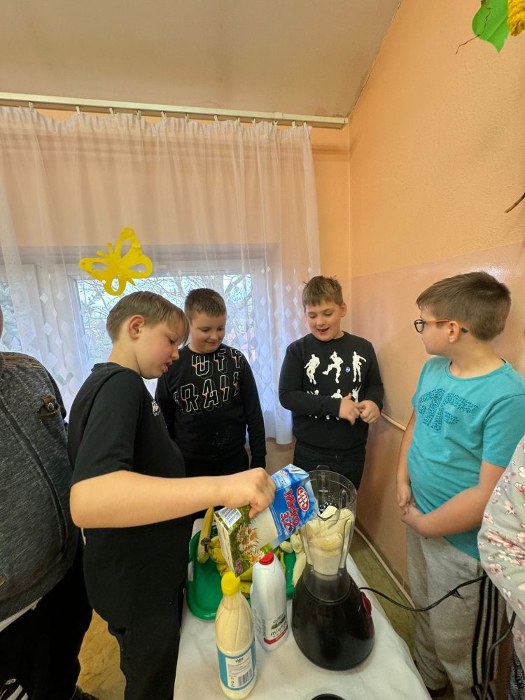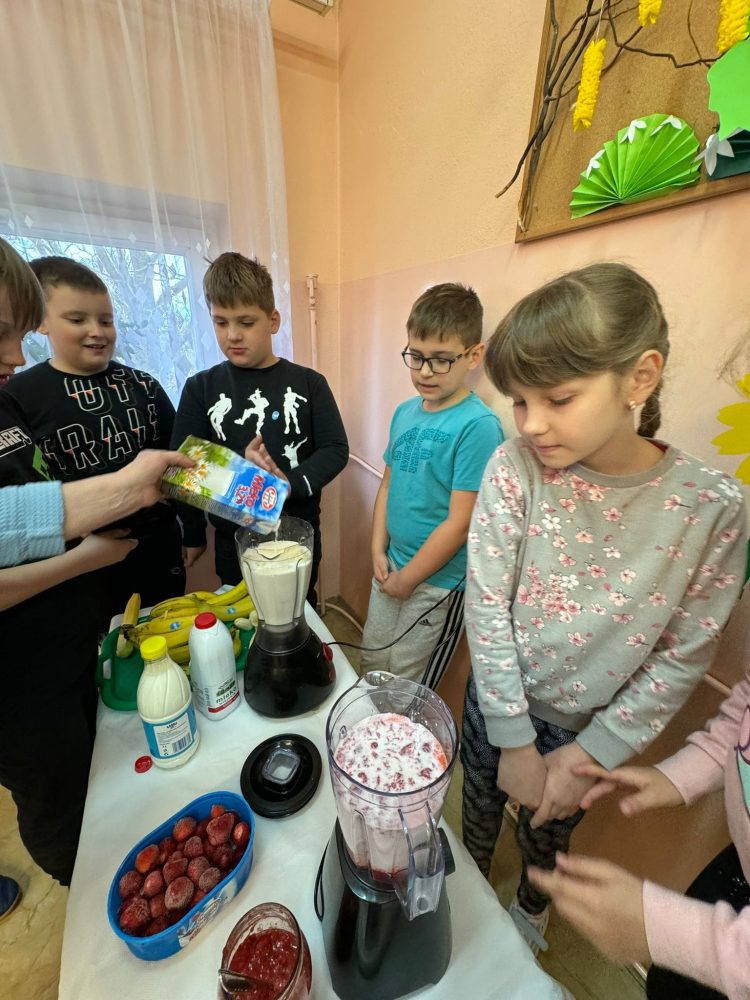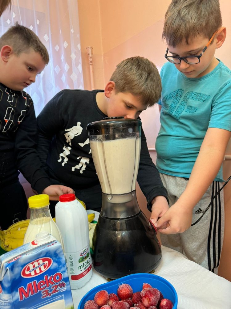 Produkty mleczne dostarczają składników odżywczych istotnych dla zdrowia i właśnie dziś klasy 2 i 3 pod czujnym okiem wychowawców robiły pyszne koktajle owocowe![]()