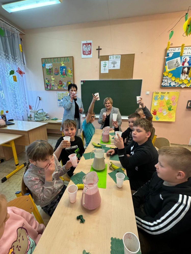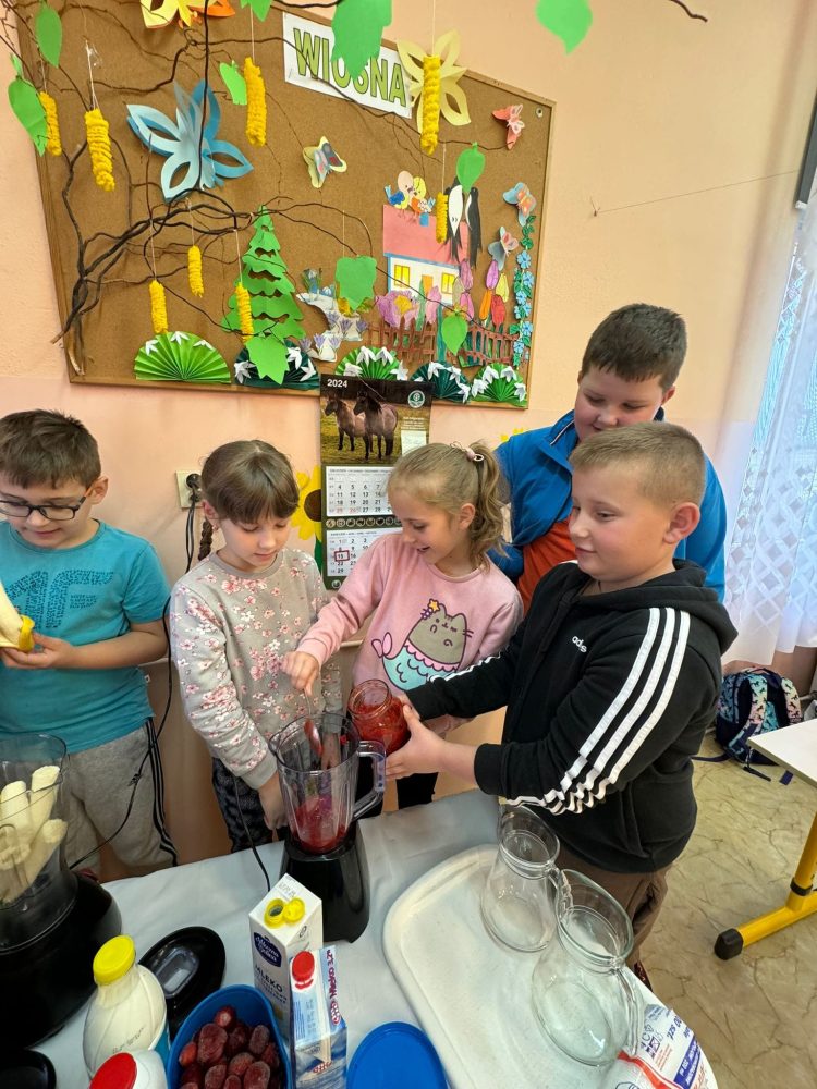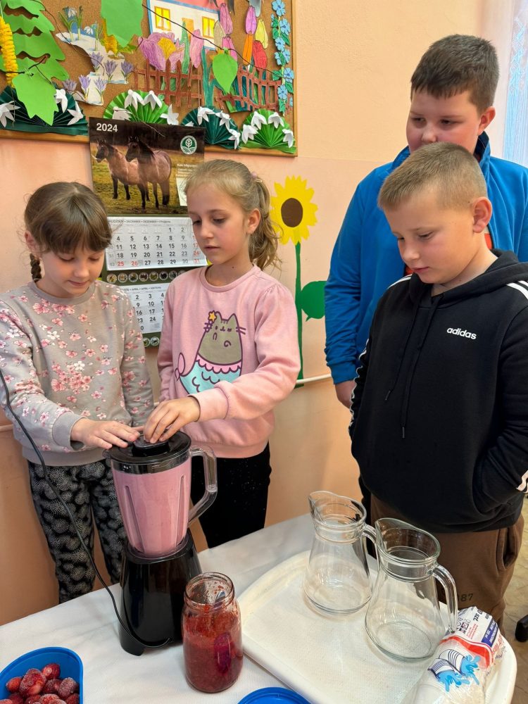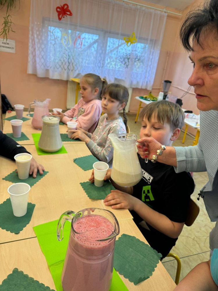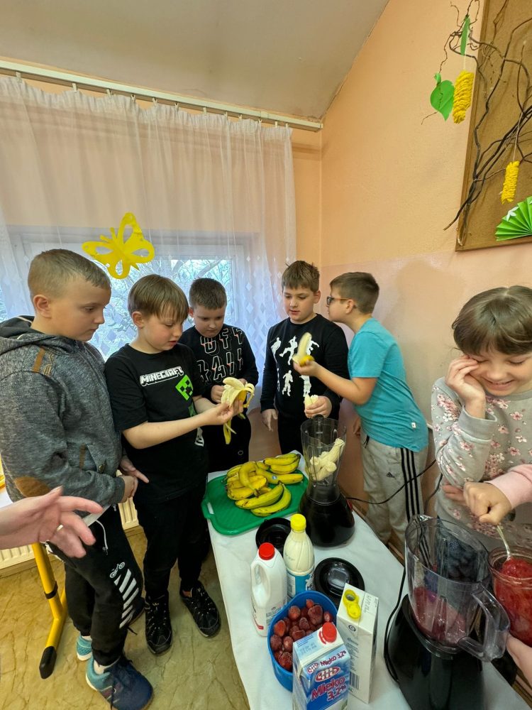 Produkty mleczne dostarczają składników odżywczych istotnych dla zdrowia i właśnie dziś klasy 2 i 3 pod czujnym okiem wychowawców robiły pyszne koktajle owocowe![]()